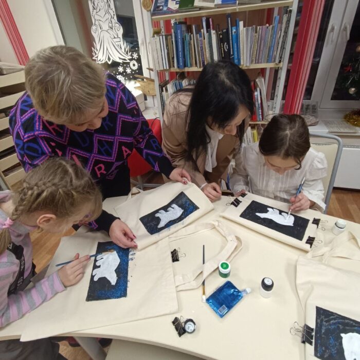 🐻❄️На занятии в Заполярном мы отправились в путешествие по ледяным просторами!Ребята изучили все чудеса Арктики: рассматривали величественные айсберги и разноцветные сполохи северного сияния, а на огромном глобусе с подсветкой искали дома для белых медведей, моржей, тюленей, овцебыков и северных оленей. А в конце каждый унес с собой кусочек Арктики — уникальную сумку-шопер с нарисованным собственными руками белым мишкой!