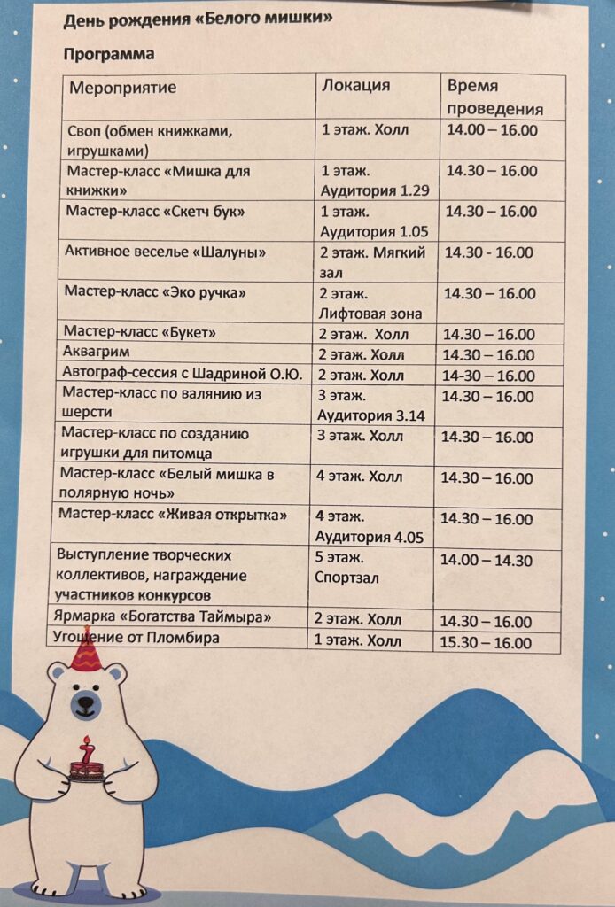 Уже завтра в 14:00 в Молодежном центре Норильска «Белый мишка» празднует свое 7-летие! Нигде нет такой концентрации белых медведей, как в кабинете нашего центра 🤗