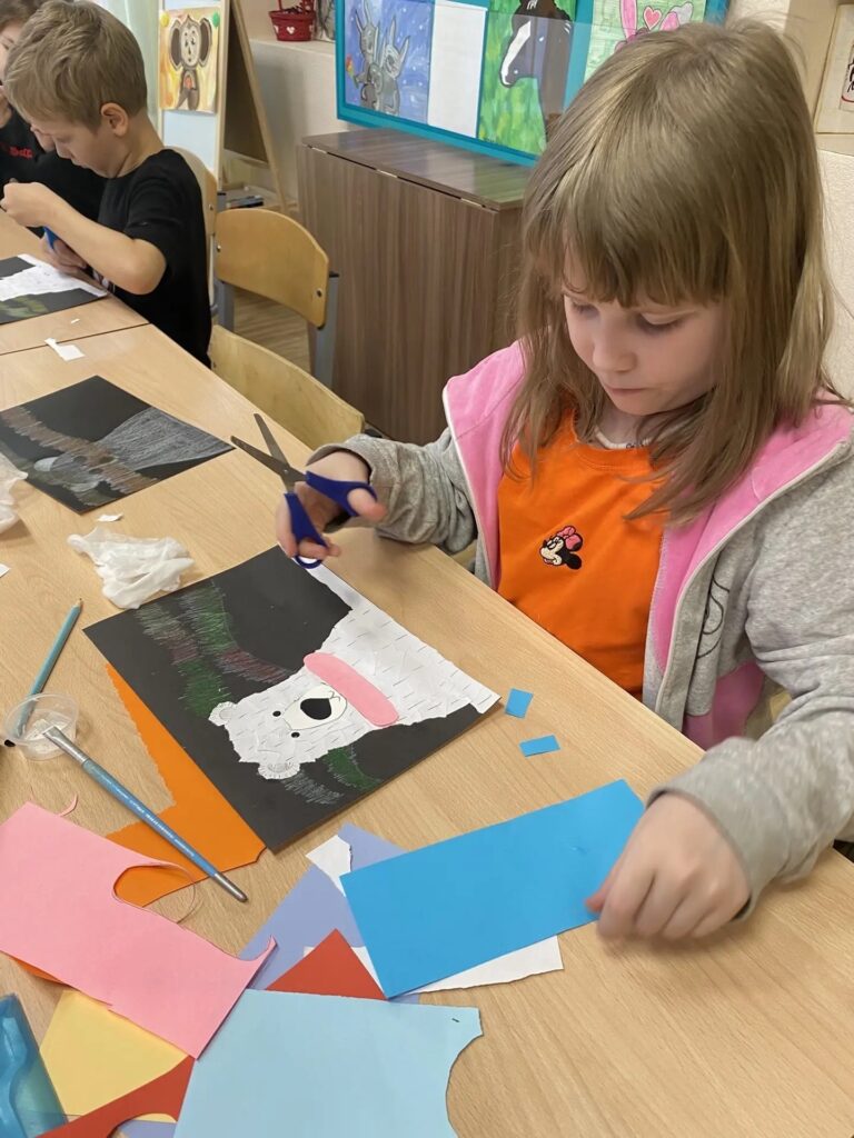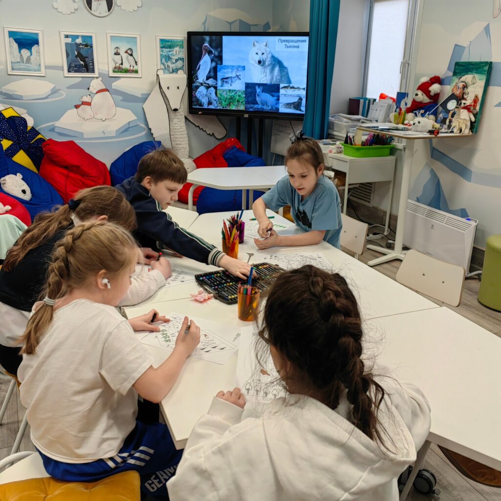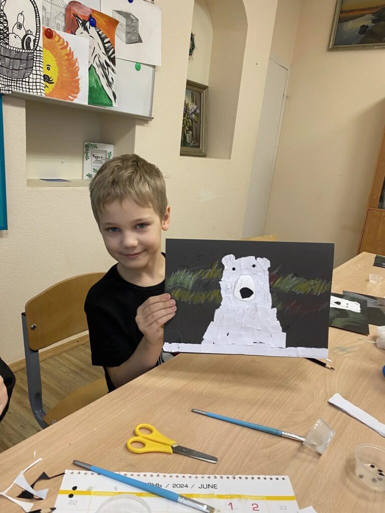А в Северодвинске, в клубе «Белый Мишка», дети узнали, чем питаются белые медведи и как они заботятся о своих малышах. В завершение сделали яркую аппликацию — медведь на фоне северного сияния. Получилось по‑настоящему волшебно!
