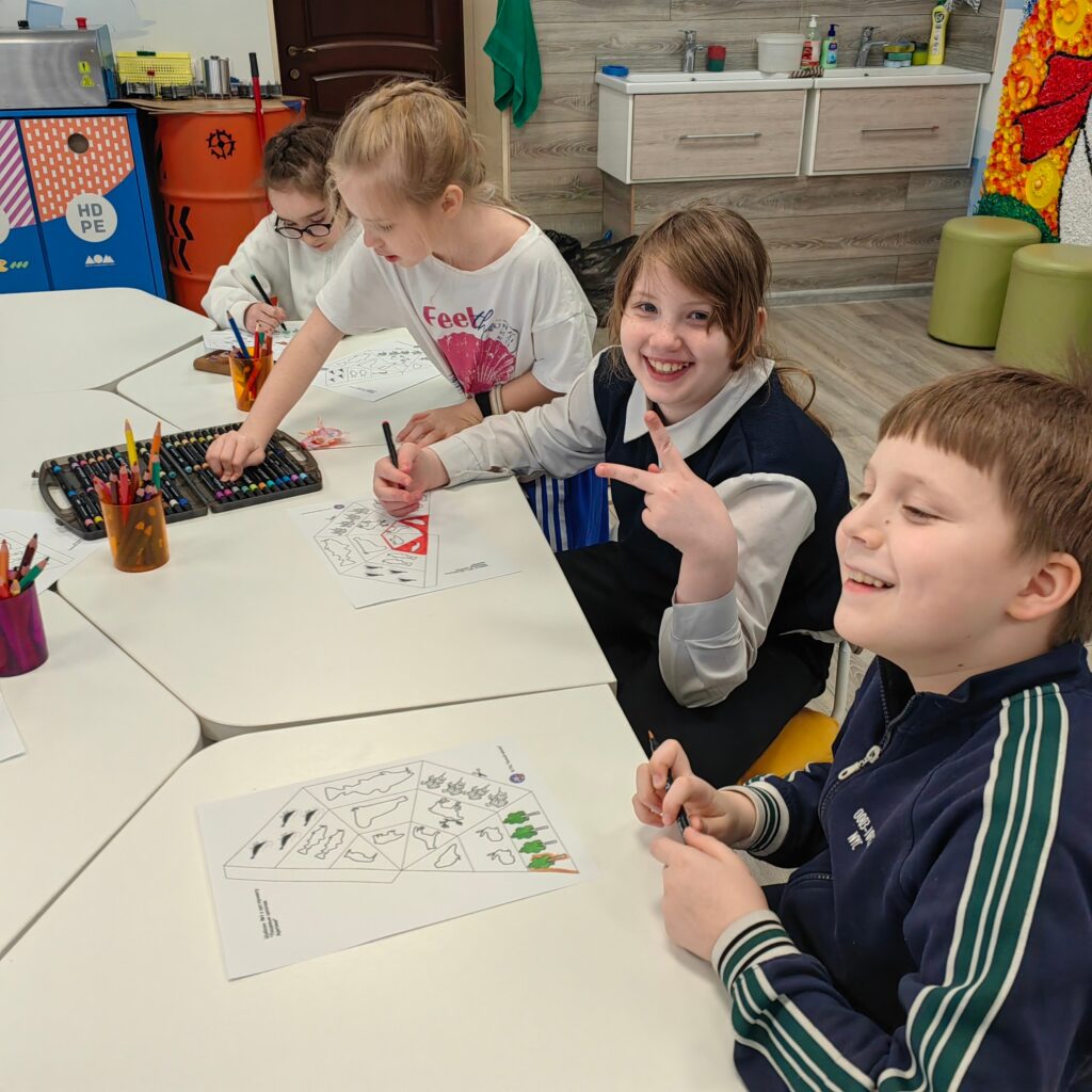 А на следующем занятии продолжили тему «Пищевые цепочки». Ребята собрали собственную пирамиду питания, обсудили роль каждого звена — от водорослей до хищников — и сделали вывод, что в природе всё связано.