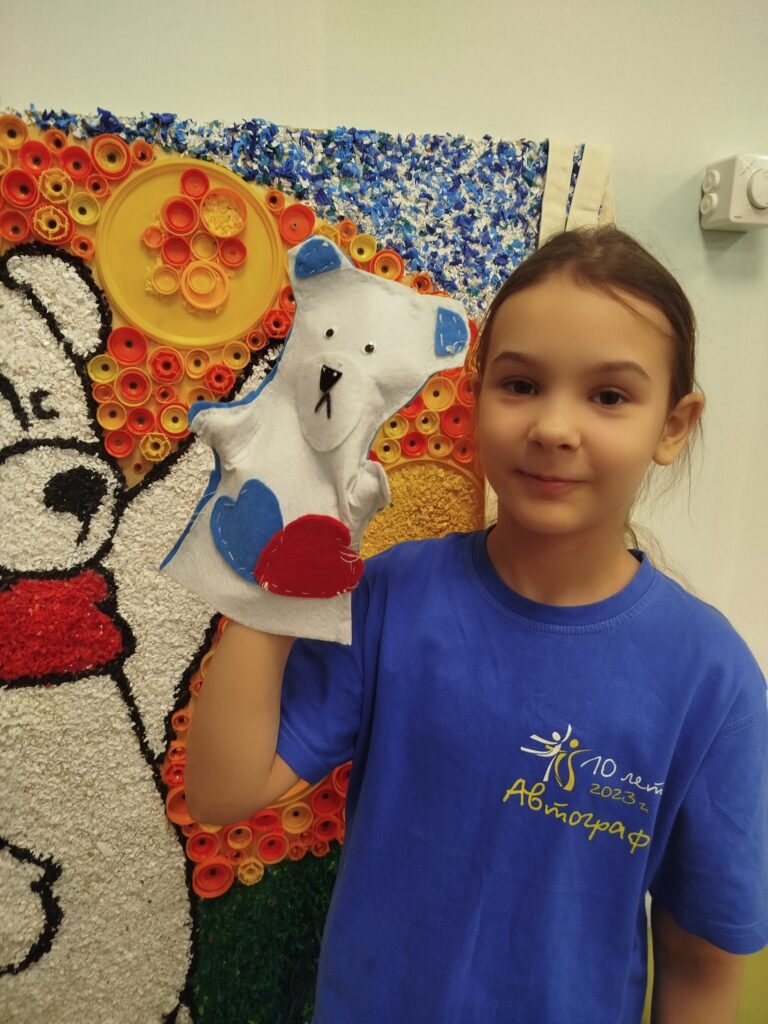 На творческом занятии ребята сшили забавных кукольных мишек‑перчаток — теперь каждый может устроить настоящий «арктический спектакль» дома!