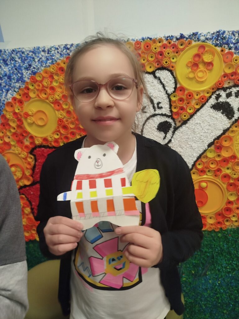 В Норильске на творческом занятии с ребятами делали бумажный свитер для мишки