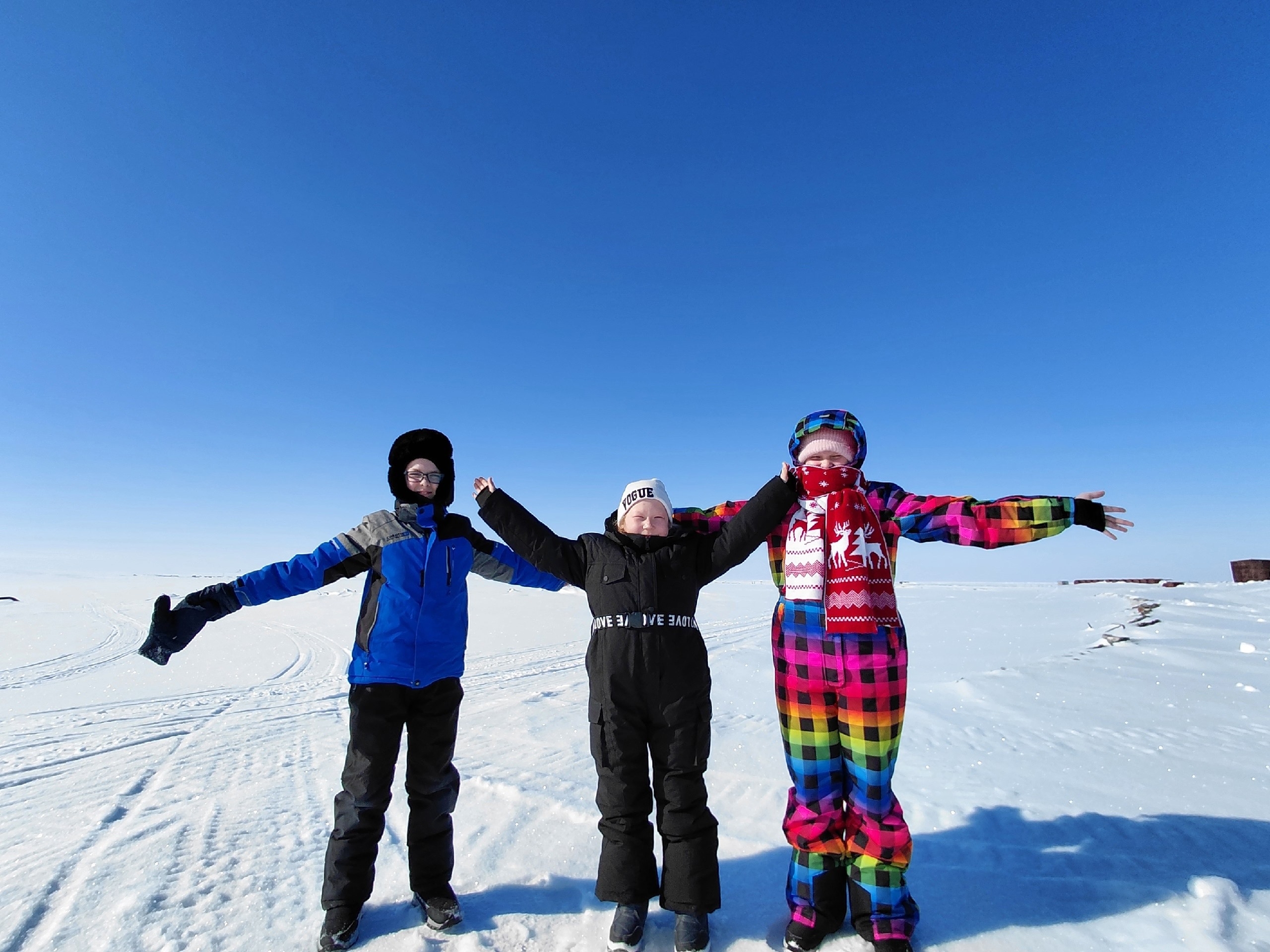 На фото ребята из кружка «Белый мишка» на экскурсии «Признаки весны в заполярье».