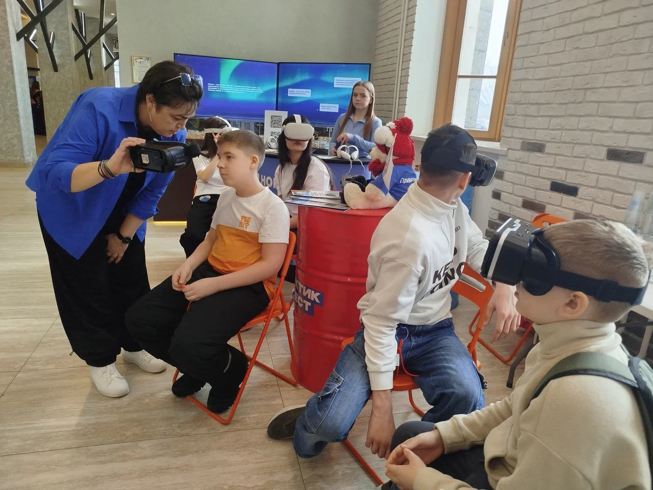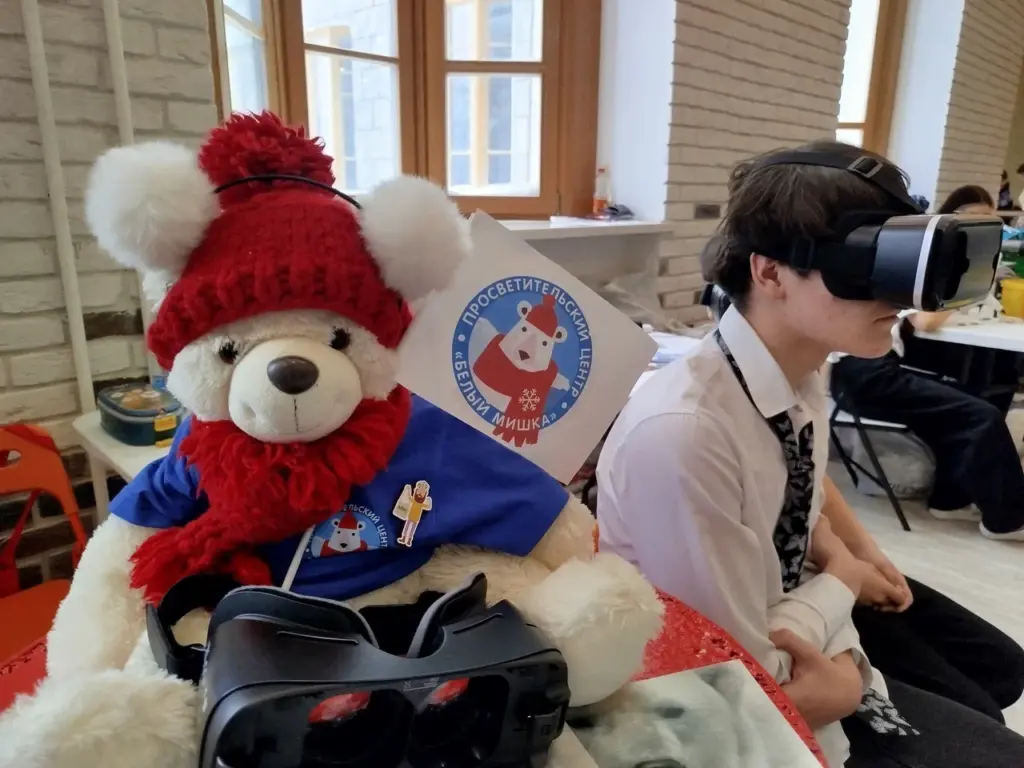 🌀 На нашей площадке дети могли надеть VR-очки с нашим приложением и отправиться в заснеженные арктические просторы, чтобы найти белых медведей! За два дня через нашу станцию прошло целых 15 классов! Дети ходили группами, сменяли друг друга, искали мишек, удивлялись и задавали сотни вопросов про Север 😍