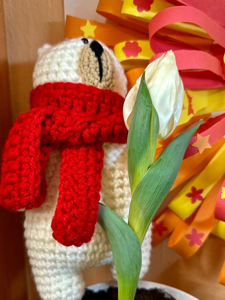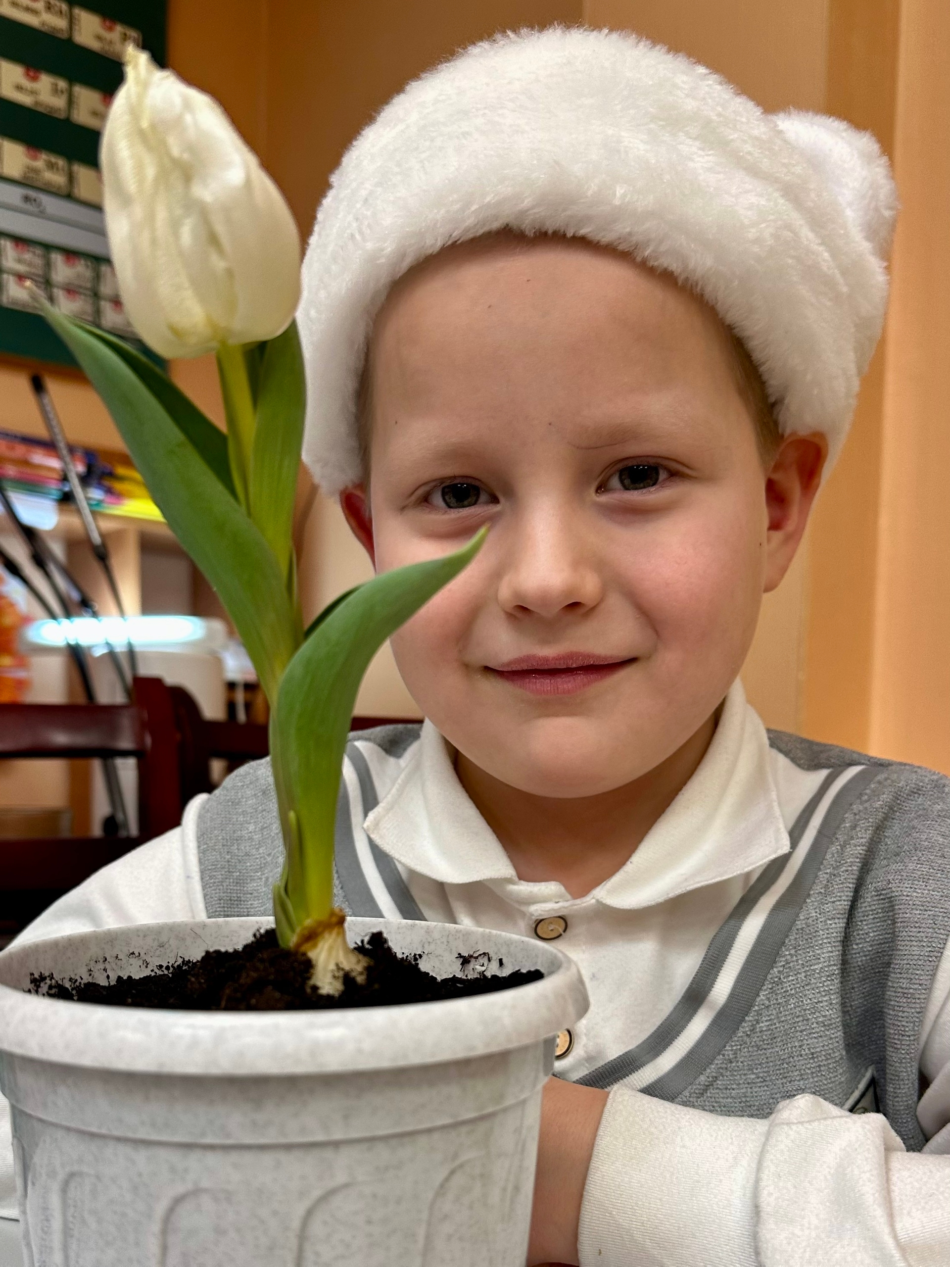И в этом маленьком сюрпризе всё символично: белый, потому, что в Арктике и в разгар самой жгучей зимней стужи, белый, потому что родился благодаря трудам участников кружка «Белый мишка», белый, потому что эта луковичка посажена нашим первоклассником по имени Миша!