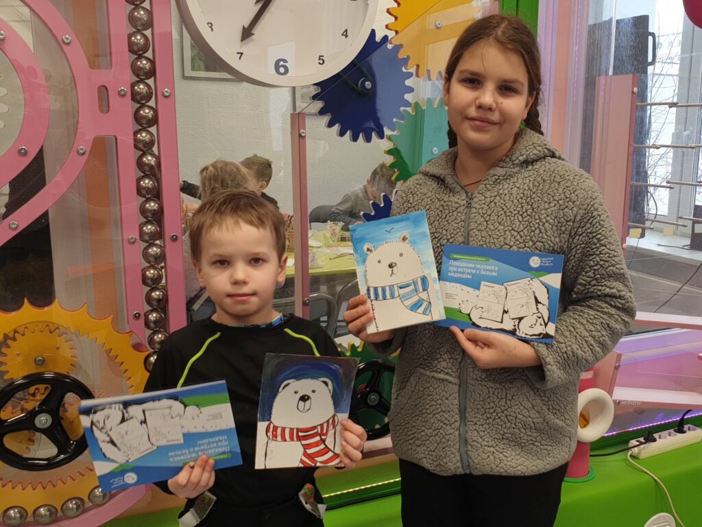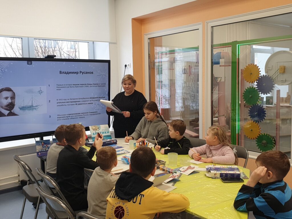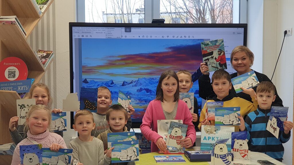 🩵 В Заполярном отправились в прошлое! Поговорили про отважного исследователя Владимира Русанова и с помощью книги «Кто был первым на Северном полюсе» разобрались в хитросплетениях истории. А закрепили впечатления от путешествия творчеством — сделали открытку с белым медведем 🐻❄️✨