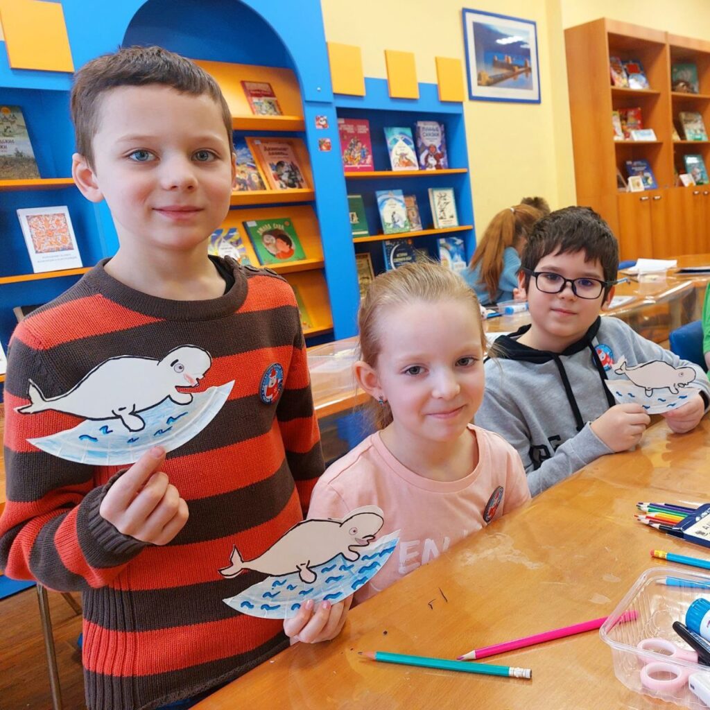🩵 В Подольске у наших «мишек» прошел завершающий урок по теме «Питание белого медведя». Конечно, вспомнили про главное лакомство — нерпу, а смастерили деликатес — белуху! Да не простую, а из одноразовых тарелок!