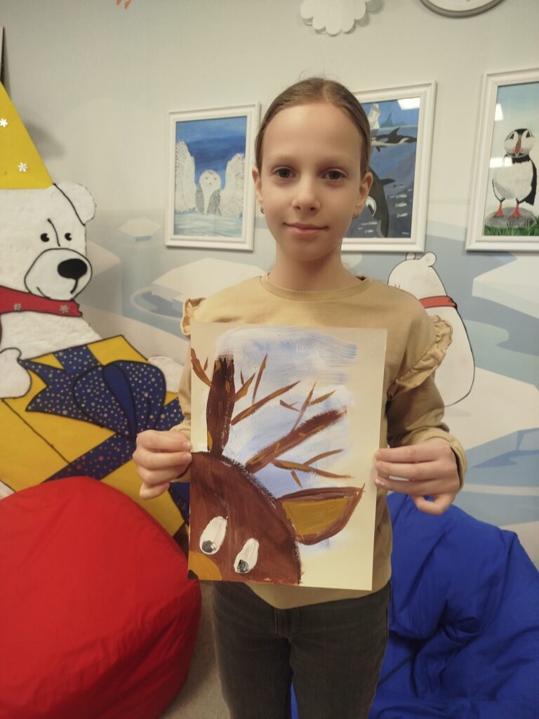 🩵 В Норильске устроили экспедицию в мир северного оленя и узнали, что эти животные имеют практически настоящие супер способности! Например, их глаза меняют цвет с золотого на синий, чтобы видеть в Полярную ночь, а нос согревает воздух вокруг быстрее любой печки! В конце занятия каждый нарисовал своего супер-оленёнка 🦌🤗