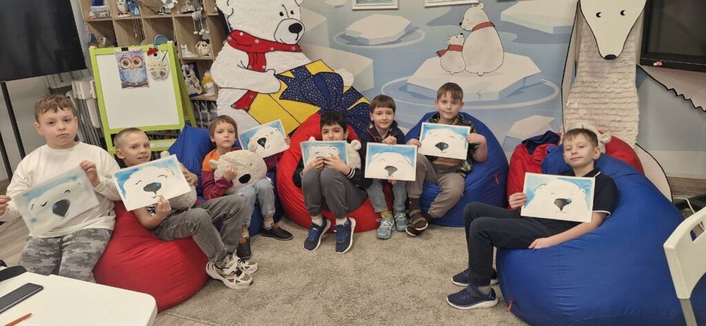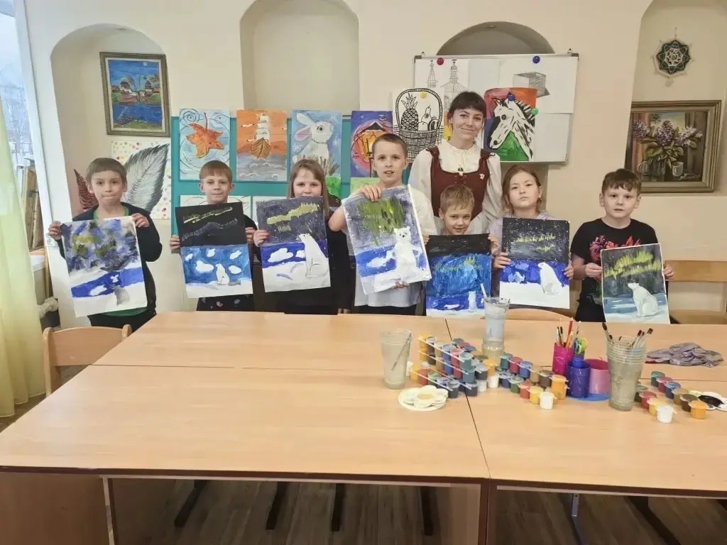 В Северодвинске, в центре содействия семейному устройству «Оленёнок» ребята тоже погружаются в мир белого медведя и рисуют обитателей Арктики.