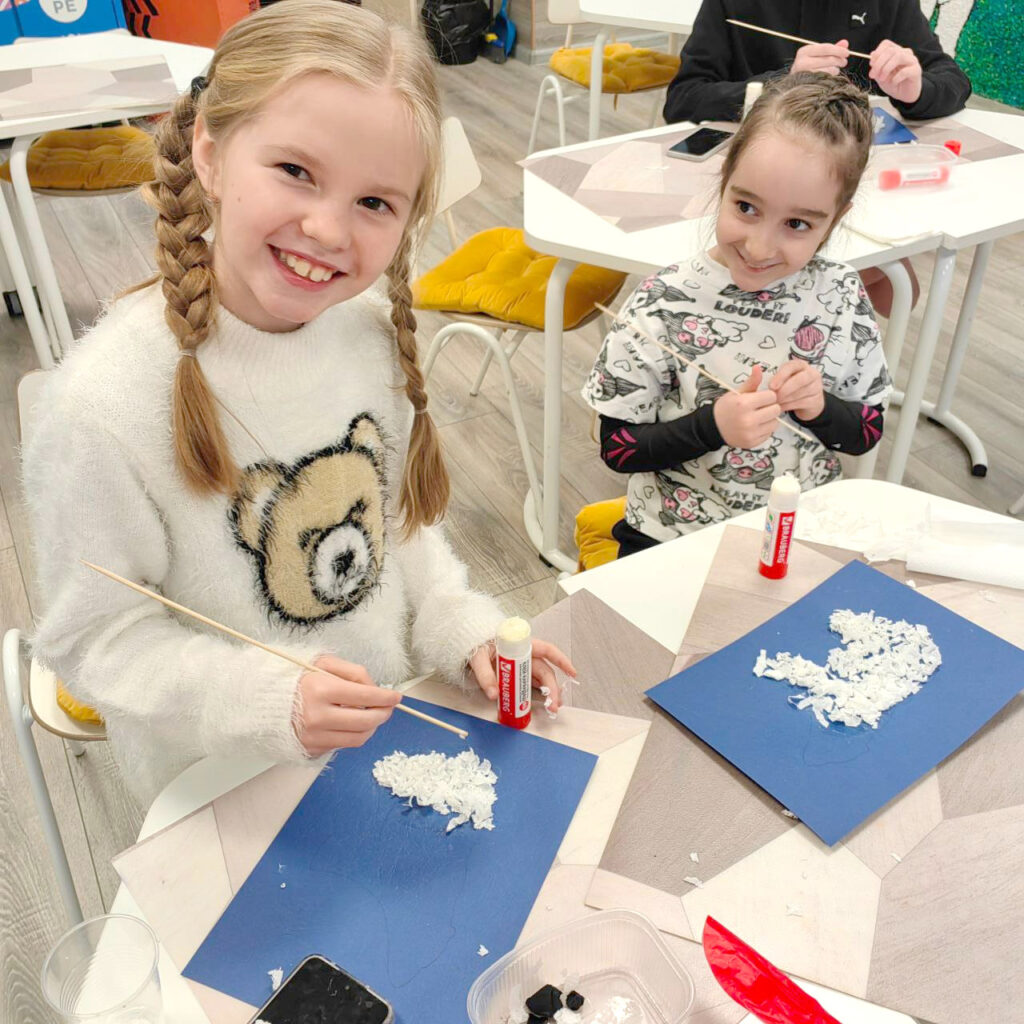 🐻❄️ Вечерняя группа погрузилась в «Жизненный цикл белого медведя», сосредоточившись на медвежатах. Ребята вспомнили всё, что знают о малышах, и начали создавать своих мишек в смешанной технике. Работа кропотливая, так что закончим свои поделки только к следующей встрече!